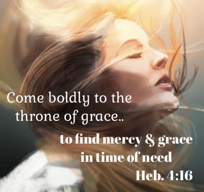 In Hebrews 4:16 Jesus says to come boldly to His throne of grace to receive His grace in our time of need, ponder on that for a moment, wow..what a precious powerful promise…God gives us His permission for us to open the door of our hearts and to come boldly to His very throne room of grace! How beautiful to receive such an honourable Invitation. What great love He has for each one of us to provide His grace to carry us through another day. What an awesome God we serve so loving & merciful and ever so faithful. Whatever your need, His grace will keep you and cover you & give you strength. So right at this moment cry out to Him and give Him all your cares, worries, fears and anxiety and leave it all with Him. He wants to replace all that troubles you with His grace, and give you His peace that is greater than any other. We serve a God who is alive in our hearts & He listens to our cry and His grace will help us endure to the end. Our God specializes in doing the impossible and nothing is too hard or too big for Him. He is our promise Keeper, our problem solver and He will never let us down. So as you call out to God know that He hears you and will answer and give you His grace in your time of need! What a precious wonderful Saviour that keeps His every promise. In these moments of trial and trouble I pray you feel His presence and His peace overflows in and through you.