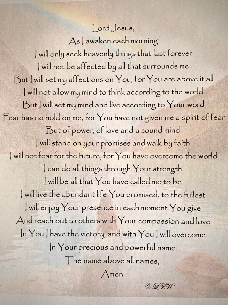 It is vitally important to keep our minds off what’s going on in the world right now. If we don’t then we are setting ourselves up for fear to take control, then it enters our heart and the result is, we will walk in fear and respond to it in our everyday life. What we see in the natural will lead us down the pathway of fear if we let it, and if we listen to the world, it will only lead us to more troublesome actions. We’ll be afraid to go out of the house and socialize with others in the future, and fearful to do things that at one time just came natural and so on. We have to take control of our minds and not let the world influence who we were created to be. We need to walk in faith and not let fear get in the way but push it aside and enjoy your journey with the Lord. Think of the time wasted when we worry, and we can lose out on so much if we do. Let’s walk by faith and in Hebrews chapter 11 verse one it says, faith is the substance of things hoped for, the evidence of things not seen. Now that is true freedom when we walk the pathway of faith, which is His path of life and trust Him for the future. I was inspired to write this prayer of faith to encourage you on a daily basis not to fear, but to stand on His promises and believe in His word. There is a glorious outcome at the end of the pathway of faith so keep on moving forward, and let His peaceful presence lead the way. In His presence there is joy and at His right hand are pleasures forevermore. So, don’t let fear rob you of enjoying to the fullest the abundant life He has promised.