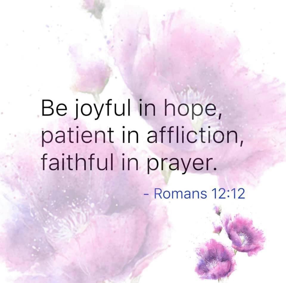 May the God of hope fill you with joy and peace as you trust Him, so you may abound in hope through the power of the Holy Spirit.