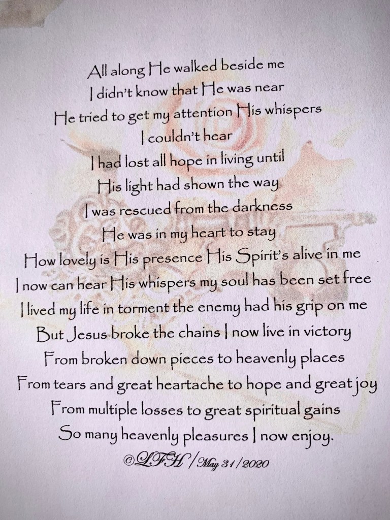 How is it possible for my life to once be so broken and shattered into so many pieces and then put back together into something beautiful? If anyone had told me years ago, I would live a life of true freedom and joy like I do today I’m sorry, but I would’ve had a hard time believing It. But glory be to God I am living proof it is possible! My deep desire is for others to experience the same and I pray everyone will. I know some say when Jesus said He came to give us life in abundance in John 10:10 that was when we get to heaven, but I say not true, we can live in pure joy right here on earth. At the beginning of the verse it says the thief which is the enemy came to steal, kill and destroy. Well he certainly had a strong grip on my life, but Jesus broke the chains that had me bound and set me free. When the Son sets you free, you are free indeed. John 8:36, Isaiah 61:3