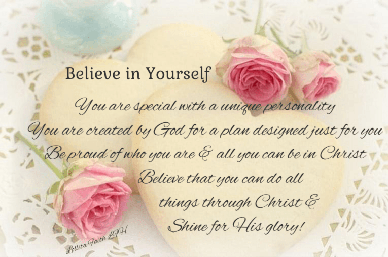 In my younger years my self worth was low and I didn’t believe that I could do anything right. Throughout my school years I couldn’t seem to fit in with the crowd and failed in my every attempt to be accepted. However as the years passed and I learned who I was to God and what He wanted to do in me and where He wanted to take me I thought wow, yes I CAN do what He has called me to do and fulfil His purpose as I rely on Him and allow Him to do what He wants in me. I think a lot of people miss out on God’s dream for them because they believe He will do it for others but not for them.