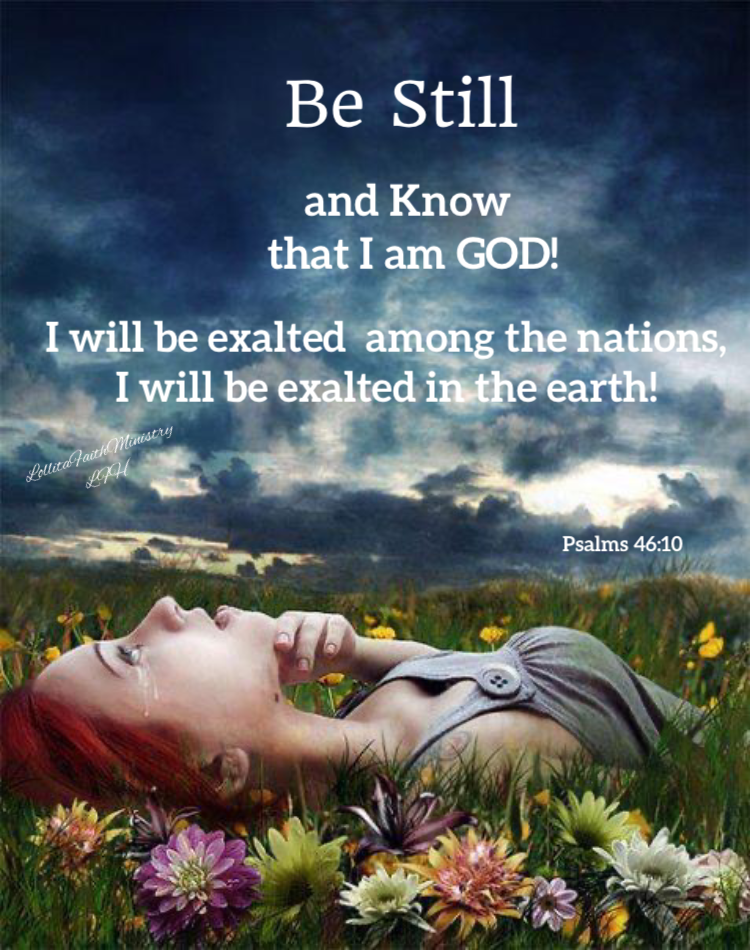 His words brought tears to my eyes and I cried oh God, thank You, thank You for Your precious word. I believe, and Yes, I will Be still, for I know with all my heart You are God and You will be exalted among the nations and You will be exalted over all the earth. There is no need for me to be disappointed You will make a way for me to share. And thank You for Your sweet sound of music in my ears that awakened my heart….