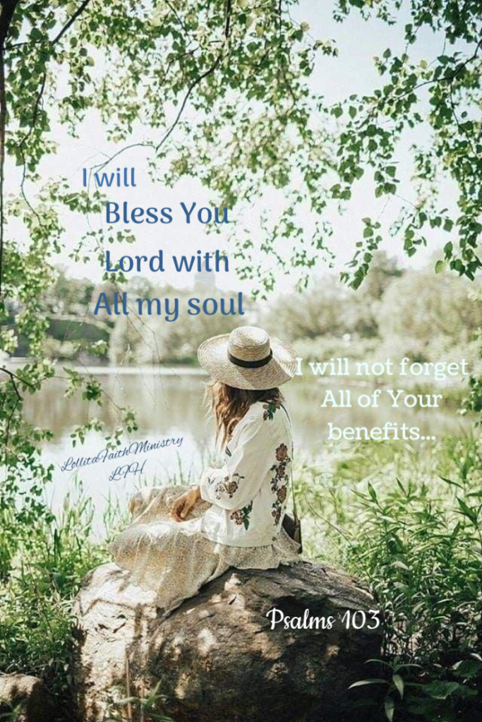 The sweet Holy Spirit whispered into my spirit Psalms 103. I knew in my heart I would be inspired by this powerful chapter. I’ve read it many times before throughout the years but this day it took on a deeper meaning and it came alive in my heart like never before first with a prayer then I meditated on all of His benefits and they are written on the tablet of my heart to be remembered always.